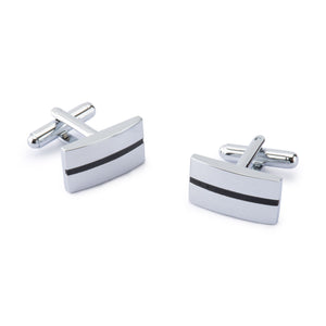 Clean lines and subtle contrast, the Vector Rectangle Cufflinks are crafted from durable brass with a polished silver finish. A slim black enamel line runs through the rectangular face, adding a refined detail that elevates modern formalwear. Designed for everyday durability and timeless appeal, these cufflinks deliver understated confidence with a sharp, architectural edge.