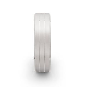 This men's white gold ring proves the power of precision. Twin polished lines cut through a brushed finish at 6mm wide, creating a subtle stripe effect that's anything but ordinary. Beveled polished edges add the finishing touch. It's understated detail that makes a statement – for those who know that sometimes, less really is more.